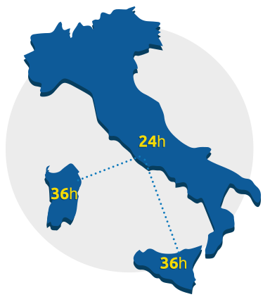 Completa l’infrastruttura una rete di autotrasportatori in grado di garantire consegne e raccolte in tutta Italia entro le 24h (36h per le isole) con mezzi gran volume centinati.